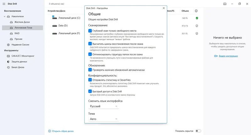 - Возможность клонирования дисков