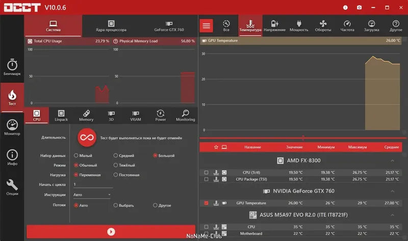 OCCT — это популярный инструмент для тестирования стабильности системы, предназначенный для проверки работы различных компонентов компьютера под высокой нагрузкой. Программа поддерживает работу с современными многоядерными процессорами и обеспечивает точную диагностику неисправностей. Благодаря возможности проведения парных тестов, таких как процессор с памятью, а также отдельной проверки стабильности центрального процессора или оперативной памяти, она помогает выявить слабые места системы.