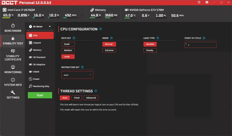 Для начала работы с OCCT необходимо скачать программу с официального сайта и установить ее на компьютер. После запуска пользователь выбирает тип теста — либо парное тестирование процессора и памяти, либо отдельные проверки видеокарты. В настройках можно установить параметры сложности и продолжительности теста, а также выбрать мониторинг температуры и других параметров системы. Перед началом тестирования важно убедиться в исправности системы охлаждения, чтобы избежать перегрева оборудования. После завершения теста программа выдает подробные графики и отчеты, которые помогают оценить стабильность системы и выявить возможные проблемы.