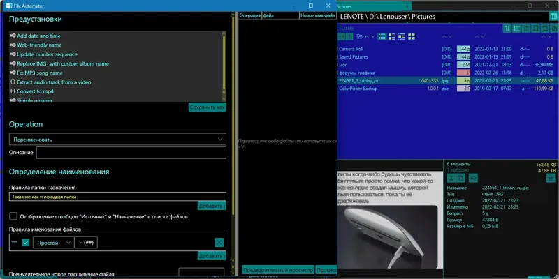 - Поддержка регулярных выражений для переименования файлов
