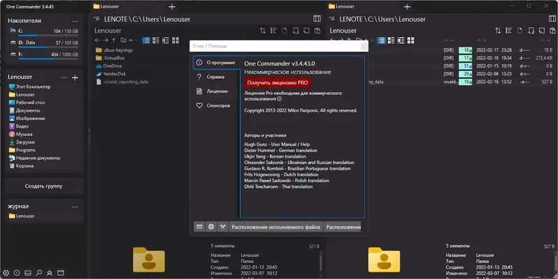 One Commander V3 — это современный файловый менеджер для операционной системы Windows, предназначенный для упрощения работы с файлами и папками. Он предлагает расширенные возможности навигации, удобный интерфейс и множество функций, которые делают управление файлами быстрым и интуитивно понятным. Программа подходит для пользователей, ищущих альтернативу стандартному проводнику с расширенными возможностями и персонализацией.