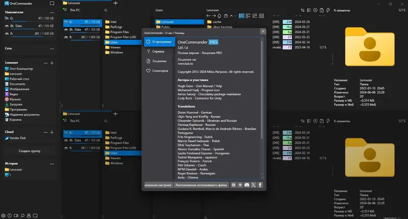 Для начала работы с программой достаточно скачать архив с сайта и запустить портативную версию, не требующую установки. Интерфейс программы интуитивно понятен: вкладки позволяют одновременно открывать несколько папок, а двухпанельный режим упрощает перенос данных между каталогами. Для поиска нужных файлов удобно использовать встроенную строку поиска, вводя часть названия или теги. Перемещение, копирование и переименование выполняются простым перетаскиванием или через контекстное меню, а возможность использования регулярных выражений делает эти операции максимально гибкими. Также можно настроить темы оформления и цветовые теги для быстрого визуального различия файлов и папок. Встроенный предварительный просмотр позволяет быстро оценить содержимое файла без его открытия, что значительно ускоряет рабочий процесс. Для регистрации программы используют сгенерированные ключи, что позволяет использовать все функции без ограничений.