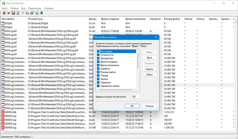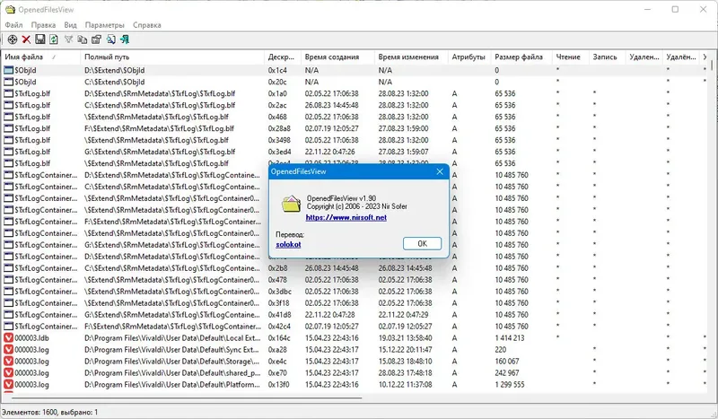 OpenedFilesView — это удобная системная утилита, которая позволяет просматривать все открытые файлы и папки на компьютере. Она предоставляет подробную информацию о каждом файле, включая дескриптор, доступные разрешения, связанный процесс и другие параметры. Такой инструмент незаменим при решении проблем с блокировками файлов и управлении системными ресурсами.