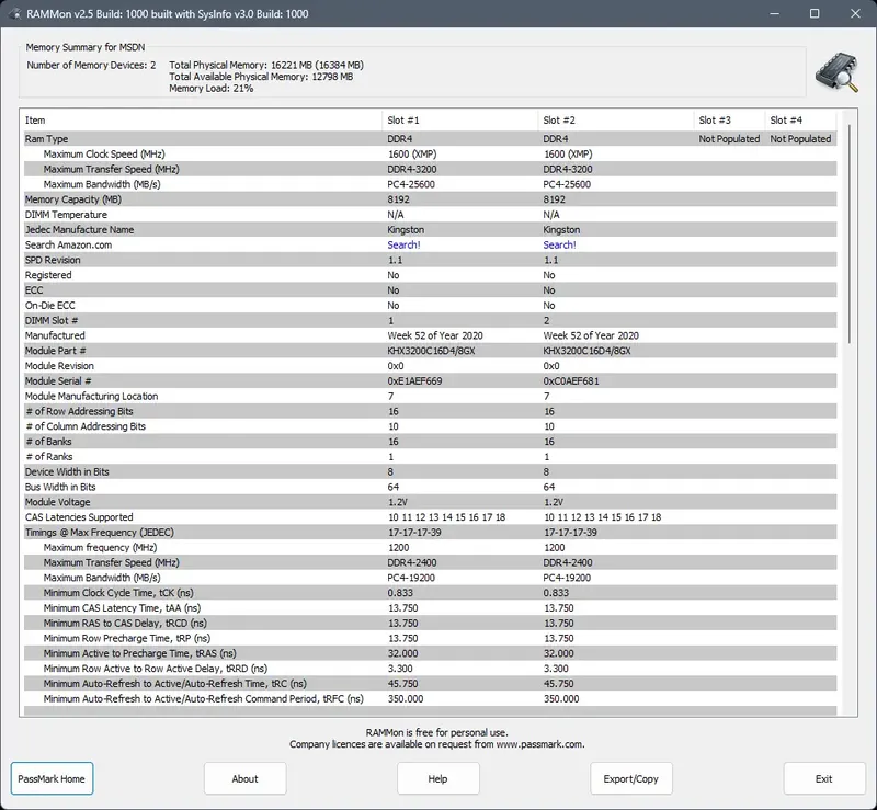 PassMark RAMMon — это удобная утилита для получения подробной информации о модулях оперативной памяти, установленных в компьютере. Она позволяет быстро определить характеристики памяти, такие как производитель, объем, частота и серийный номер, что значительно облегчает диагностику и обновление системы. Программа подходит как для домашних пользователей, так и для специалистов, занимающихся тестированием и обслуживанием ПК.
