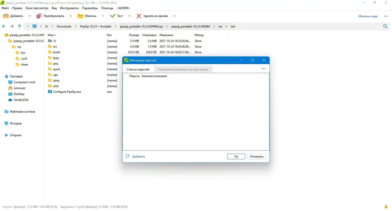 PeaZip — это мощный и бесплатный архиватор, который позволяет не только создавать и распаковывать архивы различных форматов, но и осуществлять их шифрование, управление несколькими архивами одновременно и экспортировать задания в командную строку. Программа поддерживает собственный формат Pea, обеспечивающий гибкую систему сжатия и защиты данных, а также интеграцию с внешними библиотеками для работы с другими популярными форматами. Благодаря наличию русского интерфейса и портативной версии, приложение удобно в использовании и легко интегрируется в рабочий процесс.