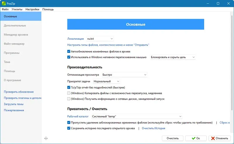 PeaZip — это универсальный бесплатный архиватор, который поддерживает множество форматов архивов, включая собственный формат Pea. Он обладает расширенными возможностями по шифрованию данных, созданию многотомных архивов и одновременной работе с несколькими файлами. Программа отличается простотой использования, интуитивным интерфейсом и высокой степенью безопасности, что делает её одним из лучших решений для системных утилит категории архиваторов.
