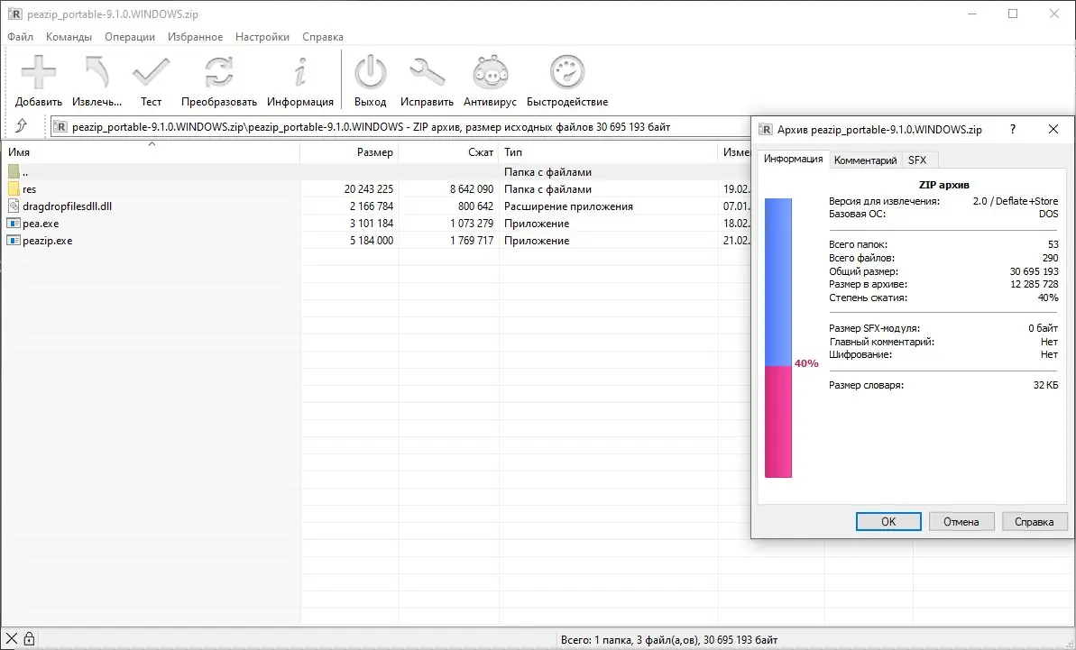 PeaZip — это мощный и надежный архиватор, который можно скачать бесплатно и на русском языке. Для этого достаточно перейти на официальный сайт разработчика и выбрать подходящую версию для своей системы. В программу встроены все необходимые инструменты для эффективного управления архивами, а возможность скачать её на русском языке делает использование максимально удобным. Также доступна портативная версия, которая не требует установки и идеально подойдет для работы на разных устройствах или в случае необходимости быстрого доступа к архивам.