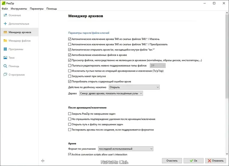 PeaZip — это мощный инструмент для архивации данных, обладающий рядом уникальных особенностей. Он поддерживает собственный формат архивов Pea, который обеспечивает гибкую систему шифрования и контроля целостности, а также совместим с большинством популярных форматов, таких как ZIP, 7Z, TAR, RAR и многие другие. В программе реализована возможность шифрования по алгоритму AES 256, что гарантирует надежную защиту информации. Помимо этого, PeaZip позволяет создавать многотомные архивы, экспортировать задания в виде командной строки и устанавливать фильтры на содержимое архивов, что значительно расширяет возможности автоматизации и управления файлами.