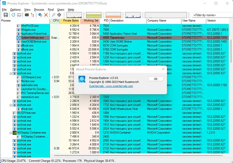 Описание Process Explorer