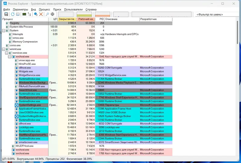 Process Explorer — это мощная системная утилита, предназначенная для детального управления запущенными процессами в операционных системах Windows. Она превосходит стандартный Диспетчер задач по функциональности и предоставляет расширенные возможности для анализа и диагностики. Программа отображает подробную информацию о каждом процессе, включая его полный путь, используемые DLL, активные дескрипторы и параметры безопасности, что делает её незаменимым инструментом для системных администраторов и продвинутых пользователей.