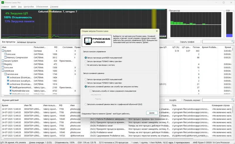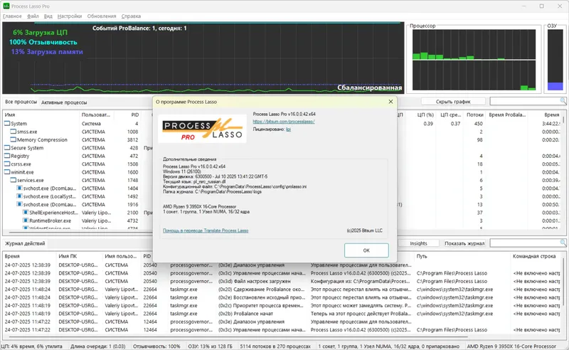 Process Lasso позволяет пользователю контролировать и регулировать процессы, запущенные в системе, что обеспечивает более стабильную работу и повышенную отзывчивость операционной системы Windows. Благодаря технологии ProBalance программа аккуратно перераспределяет приоритеты процессов, предотвращая чрезмерную загрузку CPU и минимизируя задержки. Это особенно актуально при работе с ресурсоемкими приложениями или множеством одновременно запущенных программ. Возможность автоматической настройки и ручного управления процессами делает программу универсальным решением для продвинутых пользователей и новичков.
