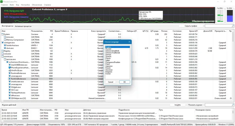 Использование Process Lasso позволяет значительно повысить стабильность и отзывчивость системы, особенно при интенсивных нагрузках.