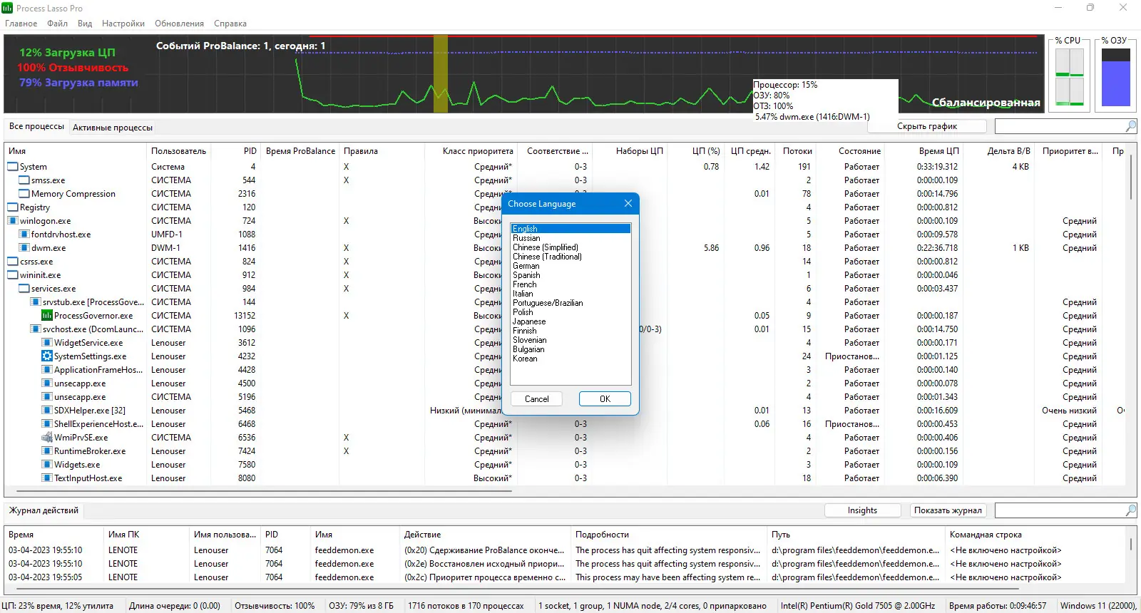 Process Lasso — это мощная системная утилита, которая помогает управлять запущенными процессами для повышения скорости и стабильности работы компьютера. Благодаря автоматической и ручной настройке приоритетов она значительно снижает нагрузку на центральный процессор, обеспечивая более плавную работу системы и быстрый отклик. Эта программа подходит для пользователей, желающих повысить производительность и оптимизировать работу своих устройств.