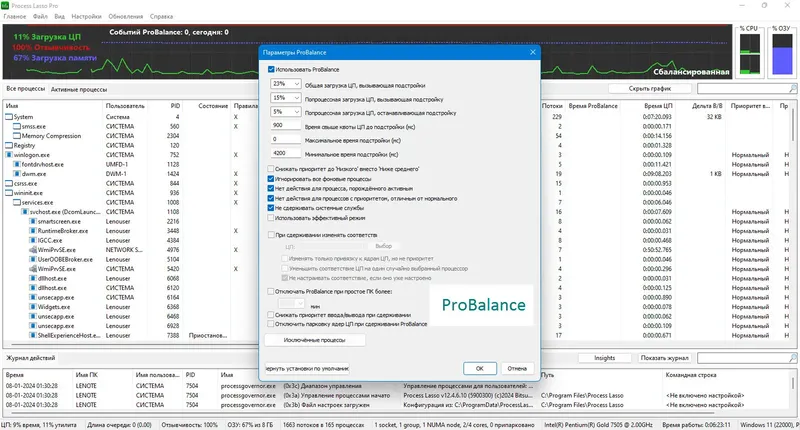 Process Lasso — это мощная системная утилита, которая позволяет управлять запущенными процессами для повышения скорости и стабильности компьютера. Программа автоматически или вручную регулирует приоритеты процессов, предотвращая загрузку CPU и зависания системы. Это решение подходит для тех, кто хочет оптимизировать работу своего ПК и обеспечить его бесперебойную работу в условиях высокой нагрузки.