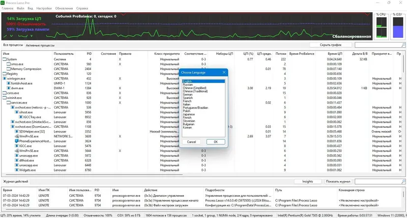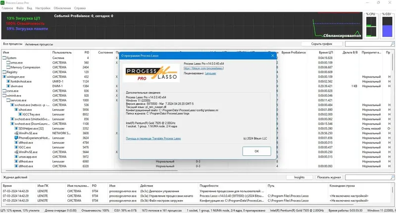 Process Lasso является универсальной утилитой, которая обеспечивает динамическое балансирование приоритета процессов, что способствует повышению производительности системы. Она автоматически регулирует загрузку процессора, ограничивая ресурсоемкие процессы и предотвращая их чрезмерное использование. В результате компьютер работает быстрее и стабильнее, особенно при многозадачной работе или запуске тяжелых приложений. Программа также включает расширенные функции настройки и мониторинга, что делает её незаменимым инструментом для профессионалов и продвинутых пользователей.