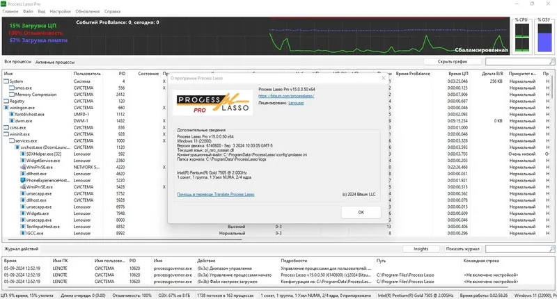 Process Lasso — это мощная системная утилита, предназначенная для управления запущенными процессами и оптимизации работы компьютера. Она помогает повысить производительность и стабильноть системы, автоматически или вручную регулируя приоритеты процессов. Благодаря технологии ProBalance программа предотвращает зависания и торможения, обеспечивая более быстрый отклик системы и комфортную работу в условиях высокой загрузки.