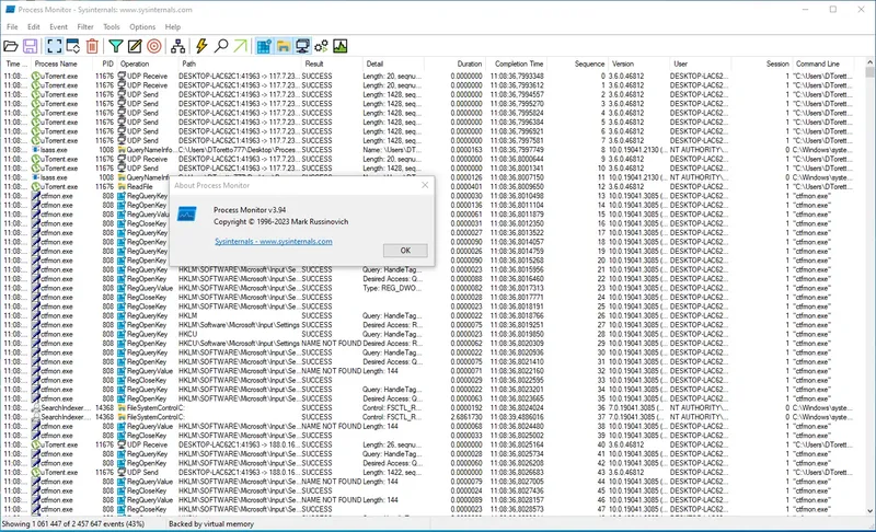 Process Monitor — это усовершенствованный инструмент, который позволяет отслеживать все важные операции в системе Windows, включая запуск и завершение процессов, работу device driver, взаимодействие с файлами и реестром. В его функционал входит расширенная фильтрация событий, что обеспечивает точность и безопасность при работе с большими объемами данных. Благодаря встроенной поддержке всех операций и подробной информации о каждом событии, программа помогает быстро выявлять причины ошибок и предотвращать возможные угрозы.