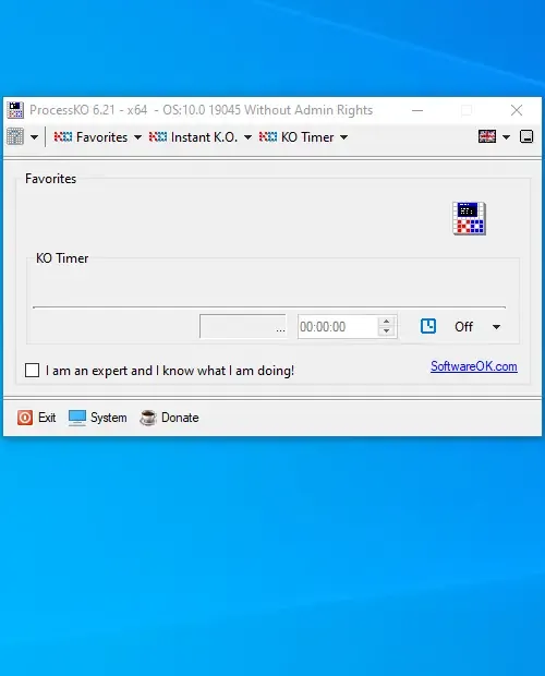ProcessKO представляет собой компактную и удобную в использовании утилиту, которая позволяет завершать любые процессы в системе одним кликом. Ее дизайн ориентирован на максимальную простоту и скорость работы, что делает её незаменимой при необходимости быстрого устранения зависших приложений или тестирования новых программных решений. Благодаря портативной природе, программа не требует установки и может запускаться с любого переносного устройства, что обеспечивает гибкость и мобильность использования.