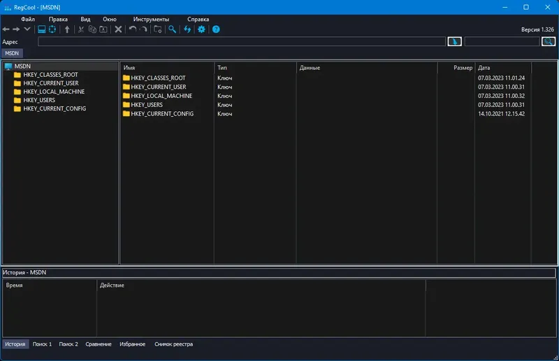 Для начала работы с RegCool достаточно установить программу или скачать портативную версию. После запуска интерфейс программы полностью повторяет структуру Проводника Windows, что облегчает навигацию по реестру. Пользователю доступны функции поиска, сравнения, резервного копирования и редактирования ключей и значений. Встроенные инструменты позволяют быстро выполнять необходимые операции, а функция сравнения помогает выявить изменения между двумя реестровыми дампами. Для более сложных задач можно использовать функцию восстановления из резервной копии или импортировать реестр для дальнейшей работы.