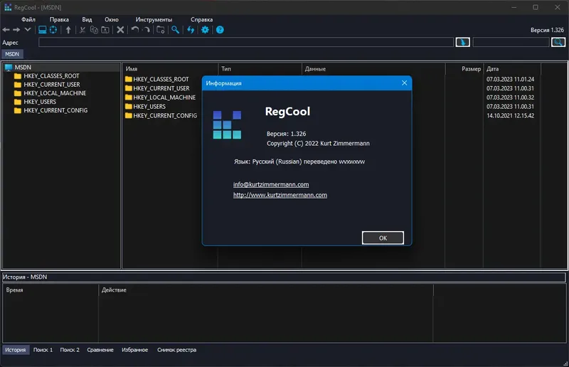 RegCool — это мощный и удобный редактор системного реестра, который значительно упрощает работу с реестровыми ключами и значениями. Эта программа обладает интуитивно понятным интерфейсом, выполненным в стиле Проводника Windows, что позволяет быстро освоить ее функции даже начинающим пользователям. В дополнение к стандартным возможностям, RegCool предлагает уникальные инструменты для сравнения реестров и поиска информации, что делает его незаменимым инструментом для системных администраторов и опытных пользователей.