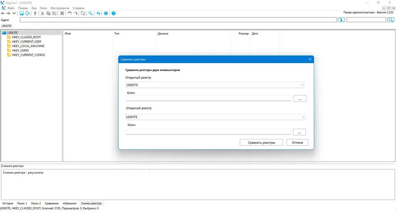 - Поддержка работы с скрытыми ключами и снимками реестра