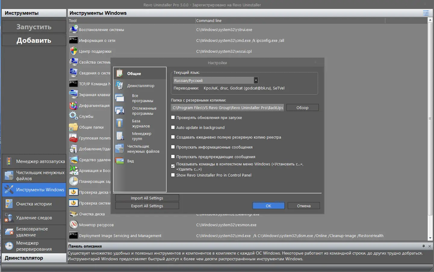 - Инструменты для управления автозагрузкой и резервного копирования.