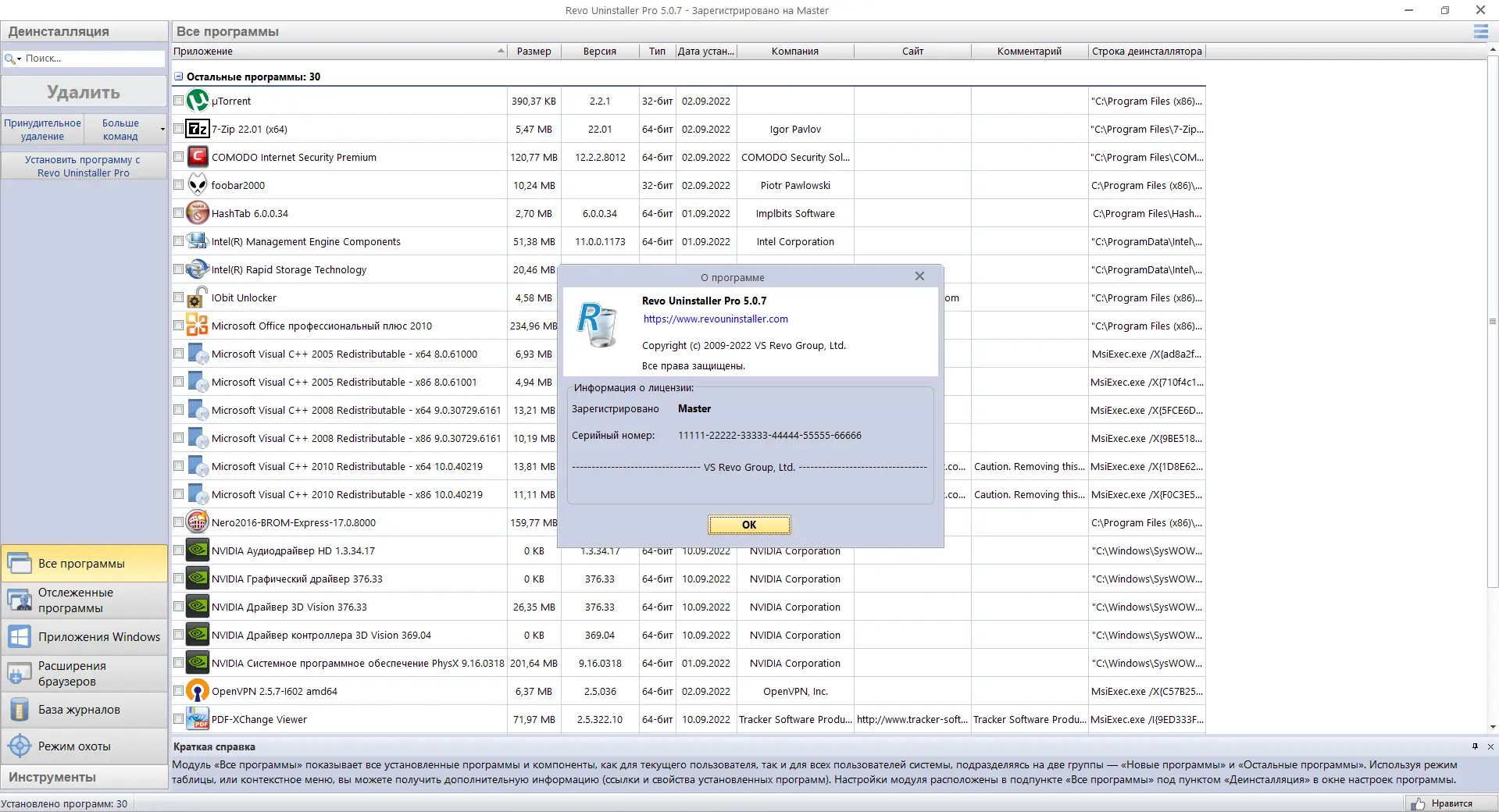 Revo Uninstaller — это незаменимый помощник для тех, кто хочет быстро и безопасно управлять установленным программным обеспечением и поддерживать чистоту системы.