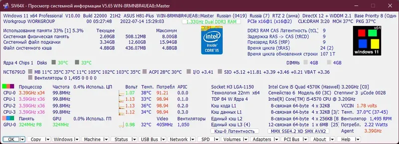 Для начала работы с SIV достаточно скачать программу с официального сайта или другого проверенного источника. После запуска портативной версии программа сразу отображает всю доступную информацию о системе. В интерфейсе можно выбрать нужный раздел, например, «Процессор» или «Память», чтобы получить подробные сведения. Для смены языка интерфейса необходимо использовать соответствующую опцию в меню «Help», выбрав «SIV Languages». Все данные обновляются в реальном времени, что позволяет отслеживать изменения и оценивать нагрузку на компоненты ПК.