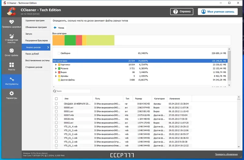 - Отображение информации о процессоре, памяти, видеокарте и жестких дисках