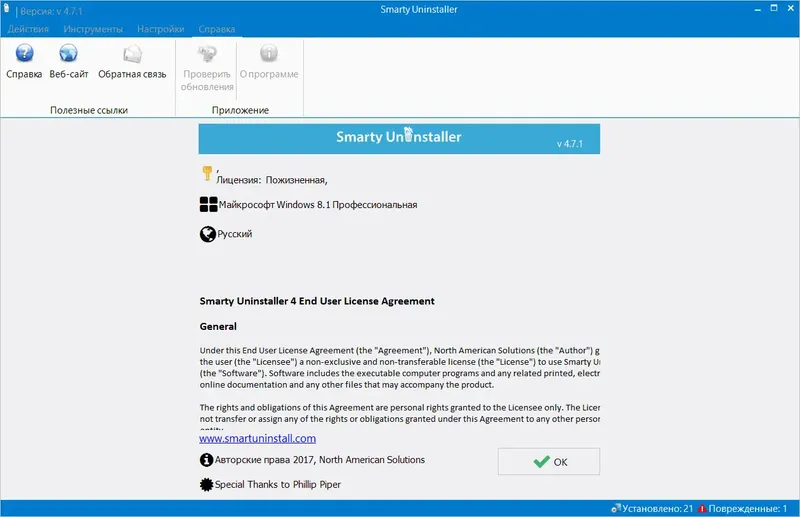 Smarty Uninstaller — это универсальное решение для удаления программ, которое позволяет избавиться от нежелательных приложений полностью и без следа. Программа поддерживает удаление даже поврежденных или неправильно установленных программ, очищая системный реестр и жесткий диск от всех остатков. Встроенный модуль Smarty Analyzer проводит глубокое сканирование системы, находя и удаляя файлы, оставшиеся после предыдущих удалений. Кроме того, программа показывает значки приложений и предоставляет расширенную информацию о каждом установленном объекте, что облегчает управление программным обеспечением. Удобство использования достигается благодаря функции перетаскивания и контекстному меню, что делает процесс деинсталляции быстрым и интуитивно понятным.