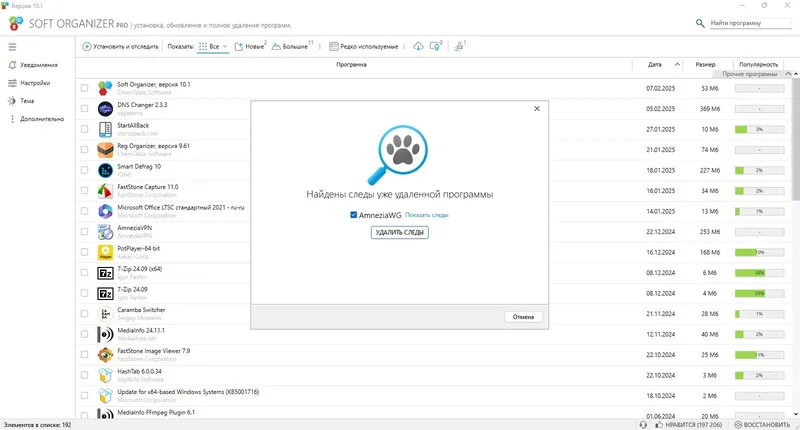Soft Organizer — это мощная системная утилита для оптимизации и полного удаления программного обеспечения. Она помогает избавиться от остатков удалённых приложений, таких как ненужные файлы, записи в реестре и папки на диске, что способствует повышению производительности системы и освобождению места. Благодаря уникальному механизму отслеживания изменений во время установки, Soft Organizer обеспечивает максимально чистое удаление программных продуктов без следов.