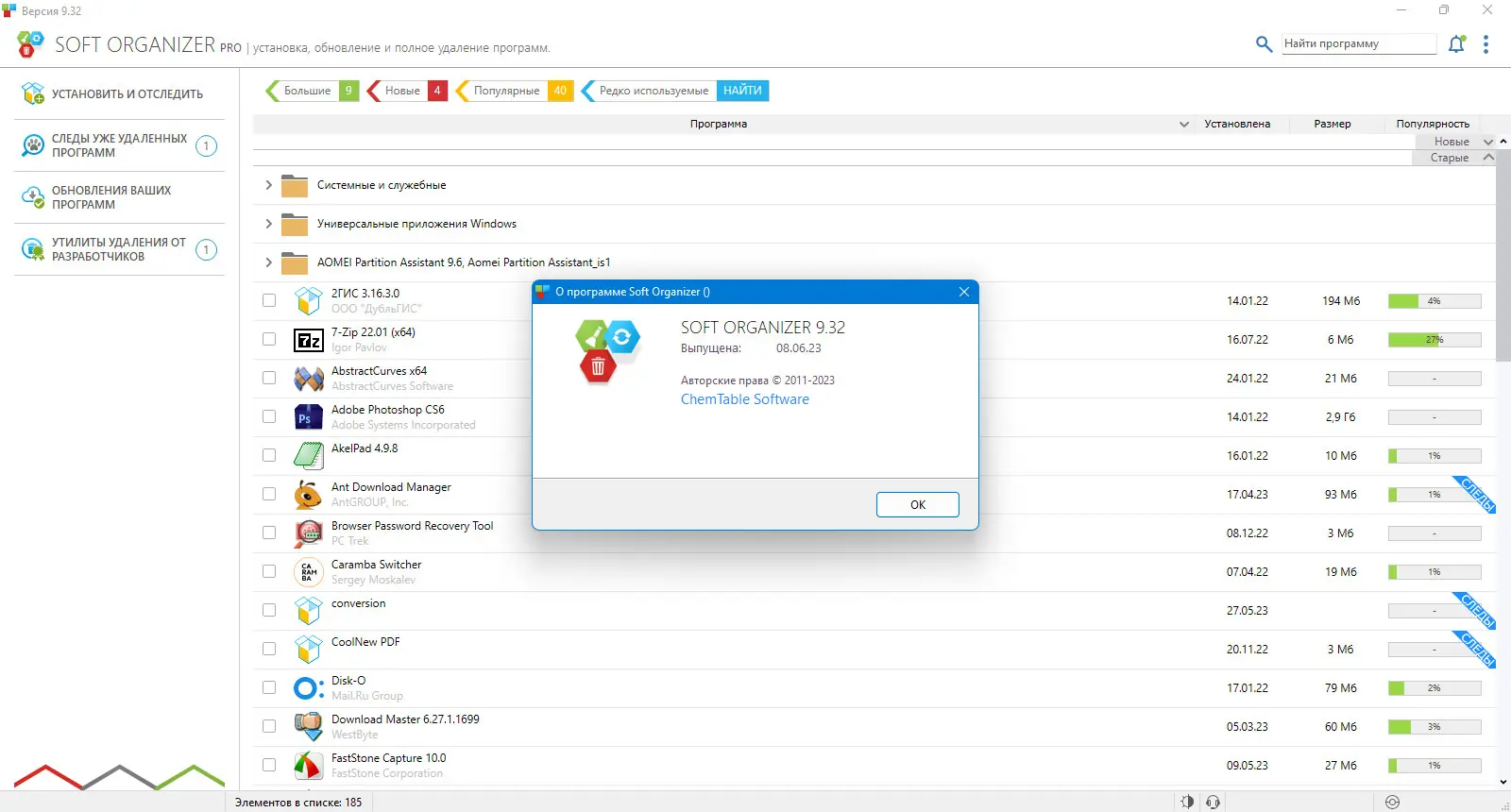 Soft Organizer — это мощная системная утилита для полной деинсталляции программ и очистки системы от их следов. Она позволяет удалять любые приложения без остатка, избавляя систему от ненужных файлов, записей в реестре и временных данных. Благодаря высокой скорости работы и удобному интерфейсу, программа становится незаменимым инструментом для оптимизации работы компьютера и поддержания его чистоты.