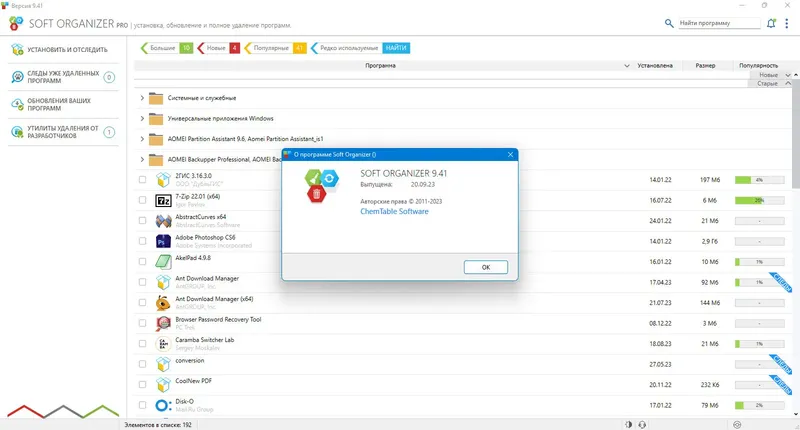 Soft Organizer — это мощная системная утилита для полной деинсталляции программ и очистки дисков и реестра от их следов. Она позволяет удалить даже самые скрытые и трудноудаляемые файлы, обеспечивая чистоту системы и повышая её производительность. Программа особенно полезна для тех, кто ценит аккуратность и хочет избегать накопления мусора после удаления приложений.
