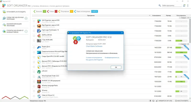 Soft Organizer — это мощная системная утилита для полной и безопасной деинсталляции программ, оставляющих после себя множество ненужных файлов и записей в реестре. Эта программа особенно полезна для тех, кто хочет поддерживать систему в чистоте и оптимальной работоспособности, избегая накопления мусора и ошибок, связанных с остатками удалённых приложений. Благодаря интеллектуальному отслеживанию изменений при установке, Soft Organizer обеспечивает более эффективное удаление по сравнению со стандартными средствами Windows.