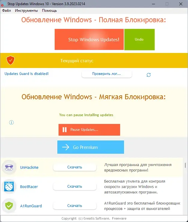 StopUpdates — это удобная и безопасная утилита для контроля обновлений Windows. Вы можете скачать ее прямо сейчас, чтобы обеспечить стабильную работу системы и избежать нежелательных перерывов из-за автоматических обновлений. Программа подходит для пользователей, ценящих стабильность и комфорт при работе с операционной системой Windows.