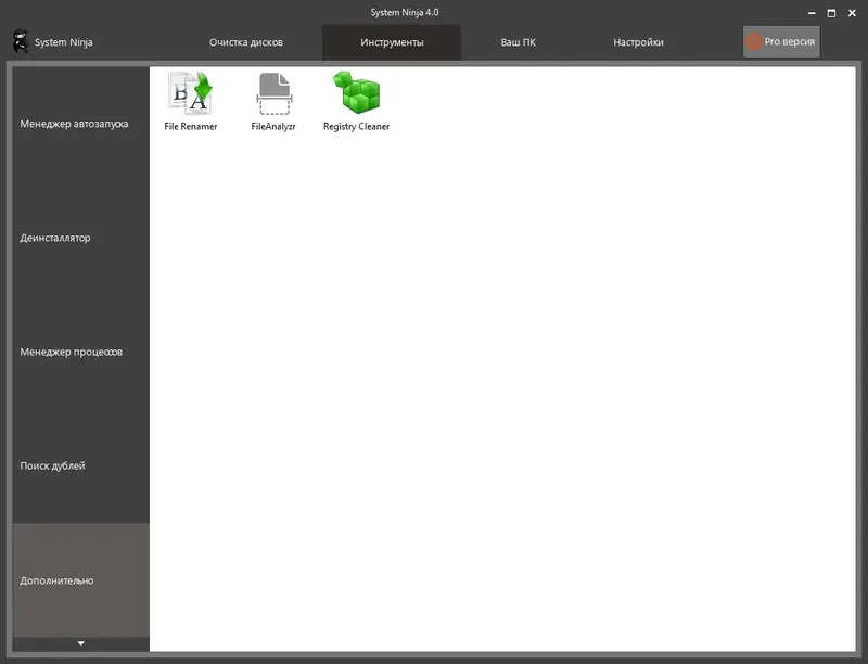 System Ninja — это универсальный инструмент для системной оптимизации, который можно скачать бесплатно на русском языке, включая portable версии для удобства использования без установки. Простая установка и расширенные возможности делают её популярной среди пользователей, желающих поддерживать свою систему в отличном состоянии. Для тех, кто ищет качественный софт для очистки и ускорения компьютера, программа станет надежным помощником, а также позволит воспользоваться всеми преимуществами профессиональной версии (pro).