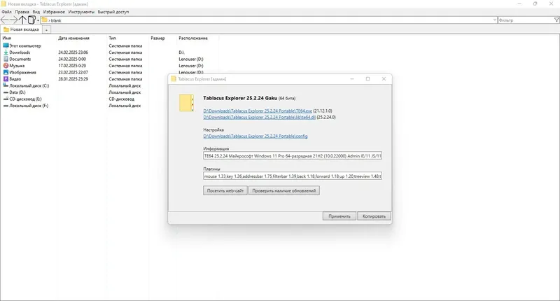 Tablacus Explorer — это мощный и удобный файловый менеджер, который значительно превосходит стандартный проводник Windows по функциональности. Он позволяет работать с двумя или четырьмя панелями одновременно и создавать неограниченное количество вкладок для быстрого доступа к папкам. Программа обладает расширенными возможностями по управлению файлами и папками, что делает ежедневную работу более эффективной и комфортной.