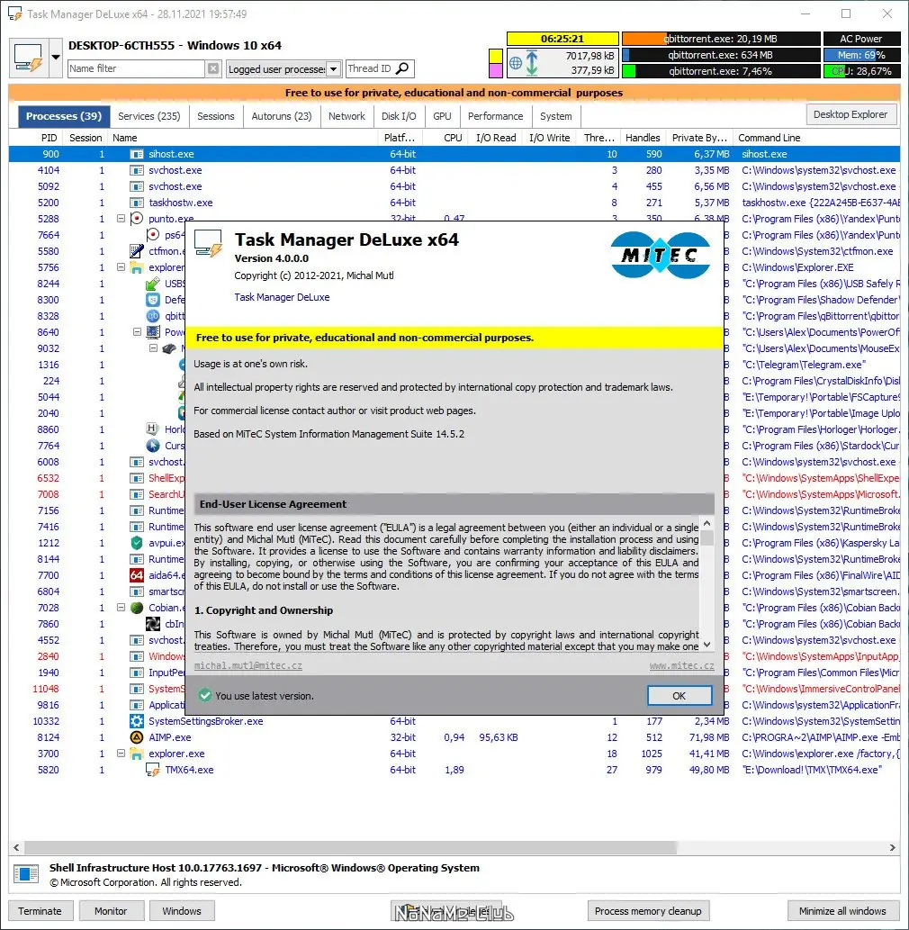 Task Manager DeLuxe — это универсальный системный инструмент, предназначенный для получения полной информации о компонентах компьютера и их состоянии. В отличие от стандартного диспетчера задач Windows, эта программа предлагает расширенные функции, удобный интерфейс и возможность работы без установки. Она подходит как для опытных пользователей, так и для системных администраторов, обеспечивая контроль за процессами, службами и сетевыми параметрами.