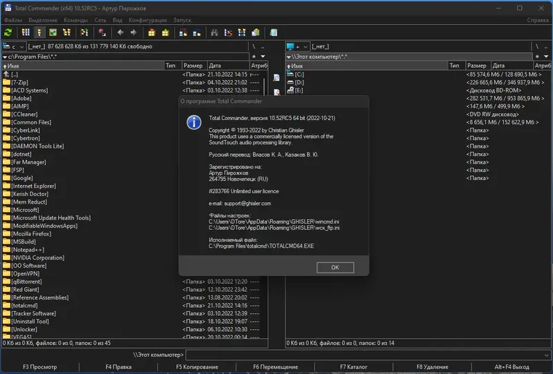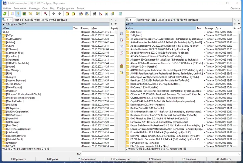 Total Commander — это мощный и стабильный файловый менеджер для Windows, обладающий удобным интерфейсом и широкими возможностями для работы с файлами и папками. Программа обеспечивает эффективное управление файлами, поддерживает плагины, встроенные инструменты и расширенные функции, что делает её незаменимым помощником для пользователей, ищущих надежное решение для системных задач.