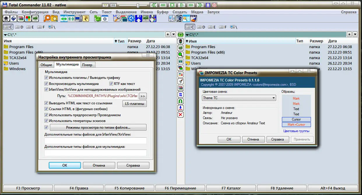 Total Commander — это популярный файловый менеджер, который предлагает расширенные возможности по сравнению со стандартным проводником Windows. В сборке предусмотрены дополнительные утилиты, такие как мультимедийный плеер с комплектом LAV Filters и автоматизация рутинных задач с помощью утилиты TCIMG. Программа поддерживает два интерфейса — компактный и обычный, что позволяет выбрать наиболее удобный режим работы. Встроенные плагины и расширения обеспечивают работу с архивами, файлами мультимедиа, а также позволяют выполнять сложные операции с файлами и папками.