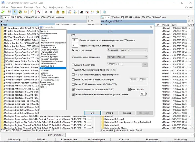 Total Commander является одним из самых популярных файловых менеджеров для операционной системы Windows. Он сохраняет традицию двухпанельных интерфейсов, что значительно ускоряет работу с файлами и папками. Программа поддерживает работу с архивами, мультимедиа и графическими файлами, а также предлагает расширенные возможности для синхронизации и переименования файлов. Благодаря поддержке плагинов и встроенным инструментам, пользователи могут легко настроить рабочее пространство под свои нужды. В программе реализованы функции для безопасного копирования и перемещения файлов, а также интеграция с FTP-серверами и возможностью работы через SSL/TLS.