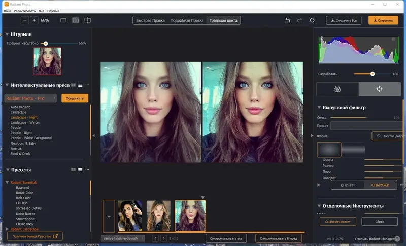 - Интуитивно понятный интерфейс с горячими клавишами и настройками