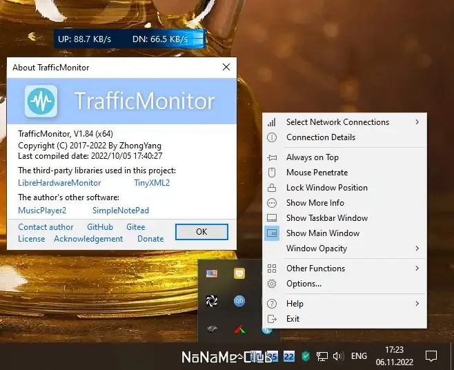 TrafficMonitor — это портативная системная утилита, предназначенная для мониторинга сетевого трафика, использования процессора и памяти в реальном времени. Благодаря минималистичному дизайну и удобному интерфейсу, программа позволяет отслеживать входящую и исходящую скорости интернет-соединения, а также предоставляет подробную информацию о сетевых адаптерах и их параметрах. Утилита легко размещается на рабочем столе или в области уведомлений, что обеспечивает быстрый доступ к важной статистике без необходимости установки.