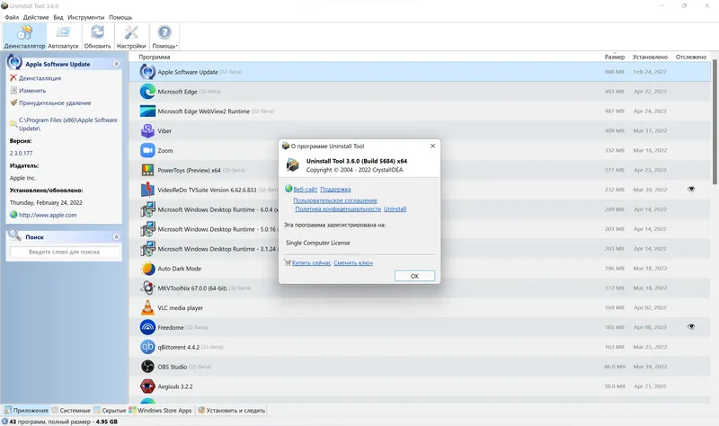 Uninstall Tool представляет собой современный системный утилит для эффективной очистки компьютера. Она позволяет быстро находить и удалять любые программы, включая скрытые и неактивные. Благодаря расширенным функциям, пользователи могут легко управлять установленным программным обеспечением, экспортировать список приложений или сортировать их по различным фильтрам. Это особенно актуально для системных администраторов и продвинутых пользователей, которым важна эффективность и безопасность при удалении программ. Программа также обеспечивает безопасное удаление, предотвращая возможные сбои или потерю данных.