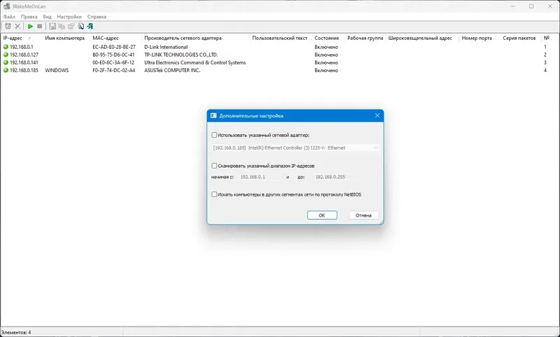 WakeMeOnLan — это легкая и бесплатная системная утилита, предназначенная для удаленного включения одного или нескольких компьютеров через сеть с помощью протокола Wake-on-LAN. Она позволяет быстро управлять состоянием устройств, не прибегая к физическому доступу, и обеспечивает удобное сканирование сети для сбора MAC-адресов. Программа подходит для администраторов и пользователей, желающих автоматизировать включение устройств в локальной сети и легко управлять ими. Скачать WakeMeOnLan можно на официальной странице проекта, что делает её доступной для всех желающих.