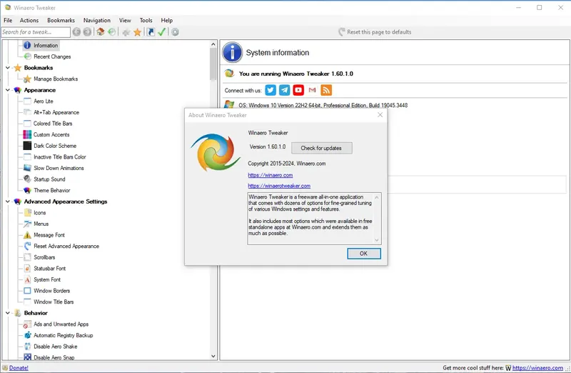 Описание Winaero Tweaker