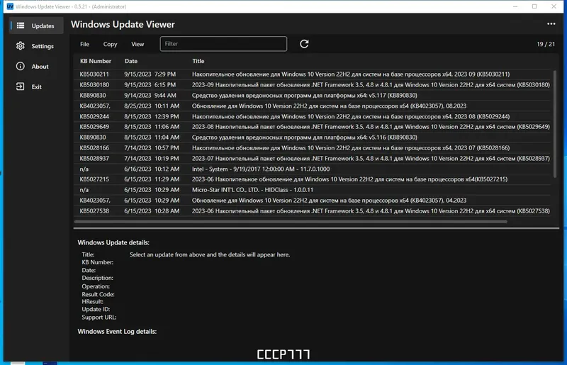 Update Viewer — это удобное средство для просмотра информации об обновлениях Windows, которое позволяет пользователям быстро получать сведения о установленных патчах и исправлениях. Программа использует API Центра обновления Windows и журналы событий для отображения данных, связанных с номерами KB. Благодаря этому она помогает отслеживать актуальность системы и управлять обновлениями без необходимости заходить в стандартный Центр обновлений.