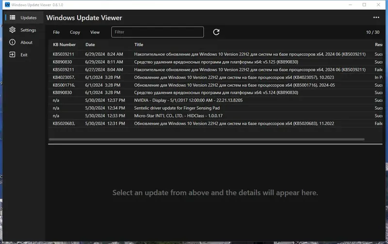 Update Viewer — это удобное средство просмотра обновлений Windows, которое позволяет пользователям получать детальную информацию о установленных патчах и исправлениях. Программа использует API Центра обновления Windows и журналы событий системы, чтобы отображать сведения о каждом обновлении, связанного с номером KB. Благодаря этому можно легко отслеживать актуальность и статус обновлений, а также исключать ненужные записи или получать поддержку по конкретным вопросам. Update Viewer подходит для системных администраторов и опытных пользователей, желающих контролировать процесс обновления Windows.