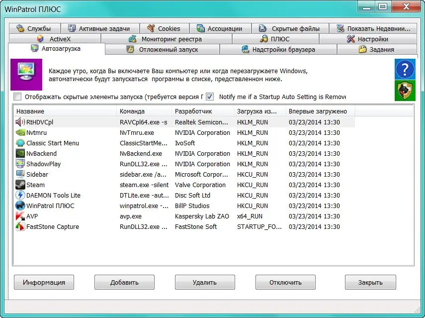 - Множество функций для контроля автозагрузки и системных компонентов