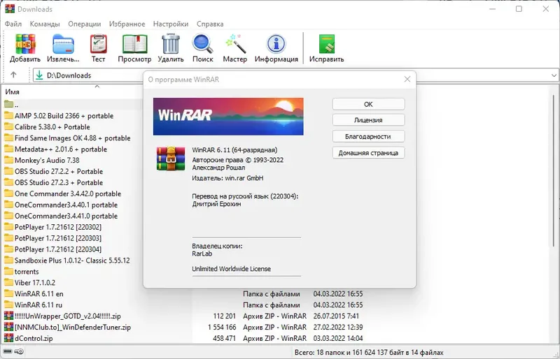 WinRAR — один из самых популярных и надежных архиваторов, широко используемый для сжатия и распаковки файлов. Он поддерживает работу с множеством форматов, обладает расширенными возможностями шифрования и восстановления поврежденных архивов. Программа подходит для пользователей, ищущих эффективное решение для обработки архивных файлов на системах Windows, включая 64-битные версии Windows 10 и более новые системы.